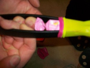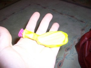 masa yardimi ile balonlarin agzi acilir, icine seker-toka caniniz ne cekerse konur…(bonibon gibi bir sey koymayin, balonun tadi yiyecege gecer)