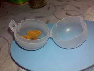 ++ super bir icat buldum. 2 TL atinca oyuncak veren cihazlardan bir iki tanesine para kaptirmisligim var. onun yumurta seklinde ve kilitli kapakli saklama kaplarini saklamistim. icine cok guzel findik-ceviz-badem konuluyor. :)