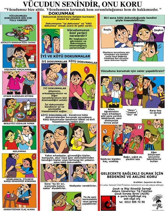 Ankara Üniversitesi Tıp Fakültesi Çocuk Koruma Birimi’nin hazırladığı bu resim çocuk istismarı ve çocuklarımıza kendilerini korumayı anlatmak için çok güzel bir özet olmuş. Lütfen paylaşalım ve çocuklarımızı bu konuda bilinçlendirelim.