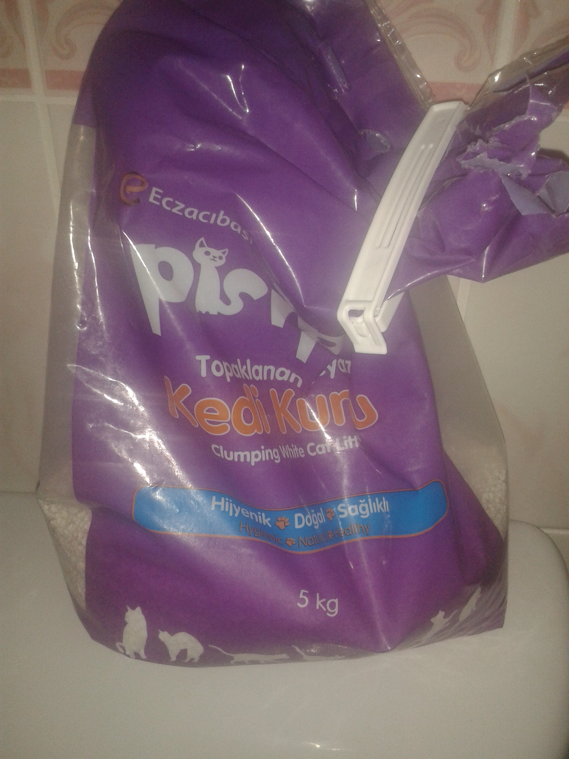 pisipisi marka kum. Eczacıbaşı üretmiş. Topaklanan cinsten. Kedi ürünlerini buna gömüyor, kum da ürünü paketliyor. Tarif etmeye gerek görmüyorum.